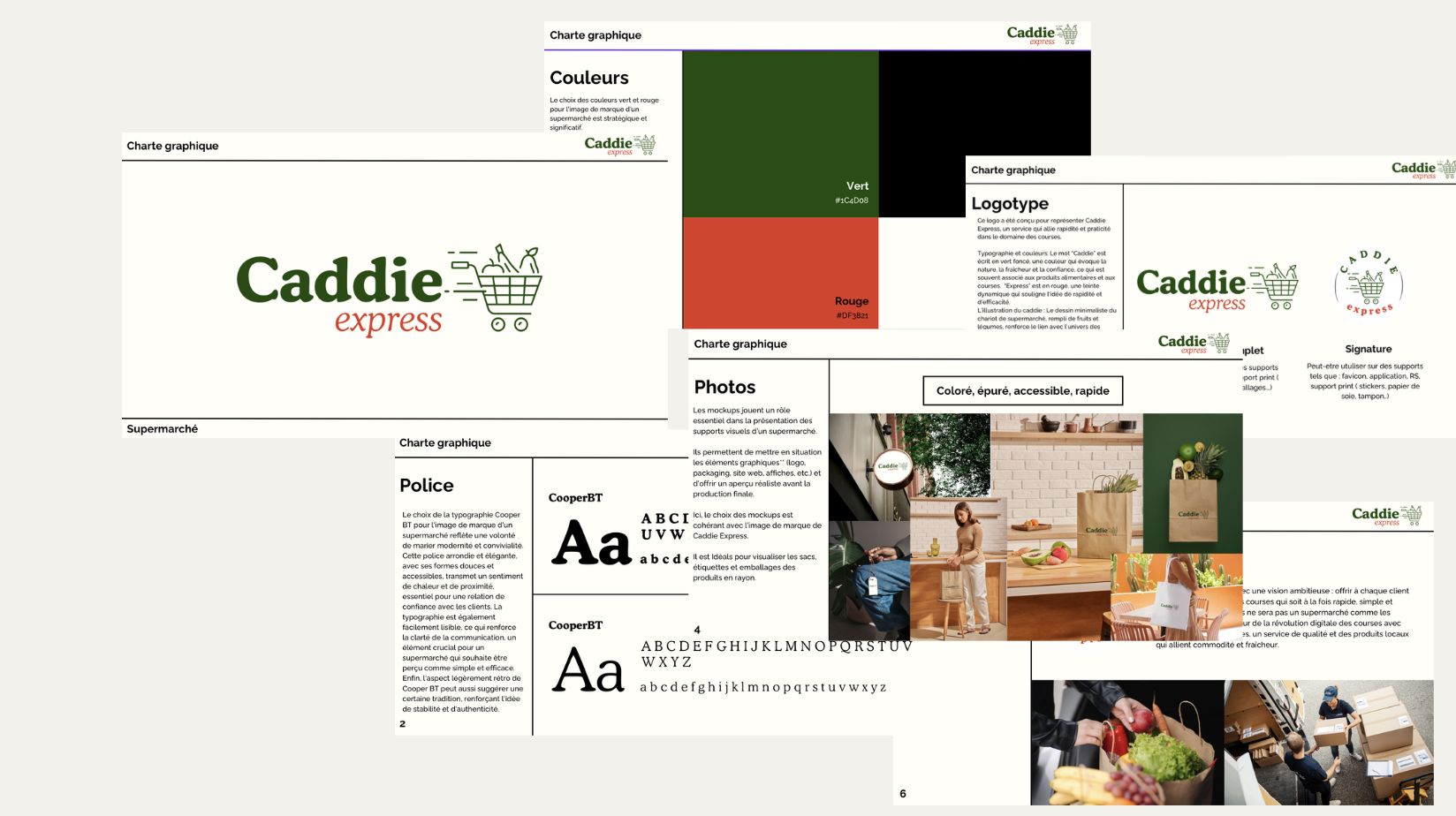 Nous avons créé l’identité visuelle complète de Caddie Express, un supermarché en Belgique. Du logo à l’univers graphique, tout a été développé pour refléter une marque dynamique et accessible.